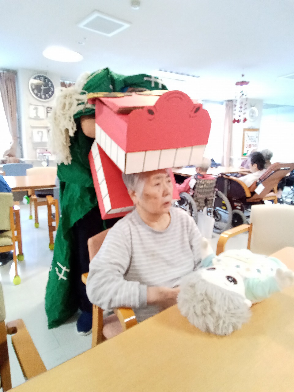 7日にフロアでのレク活動「新年娯楽会」を開催しました。利用者様と新年をお祝いするお楽しみ会をという事で「獅子舞」が登場したり「巨大おみくじ」でくじをひいたり、「福笑い」では「右~右~」「下~上~」と。出来上がった顔をみて大笑い、皆でジュースやおやつを食べながらわいわいすごしました。今年の獅子舞役は長身の新入職員。長身とあって腰を痛くした職員にかわり利用者が獅子舞役を買って出てくれました。会は盛り上がり素敵な時間となりました。そんな中ふと外を見るとしんしんと。ぼそぼそと。雪⛄☃️が降っているじゃありませんか!?皆さんも今年は雪が少なくて除雪が楽だなぁと思っていたのではないでしょうか?やっぱり降ってきましたねっ