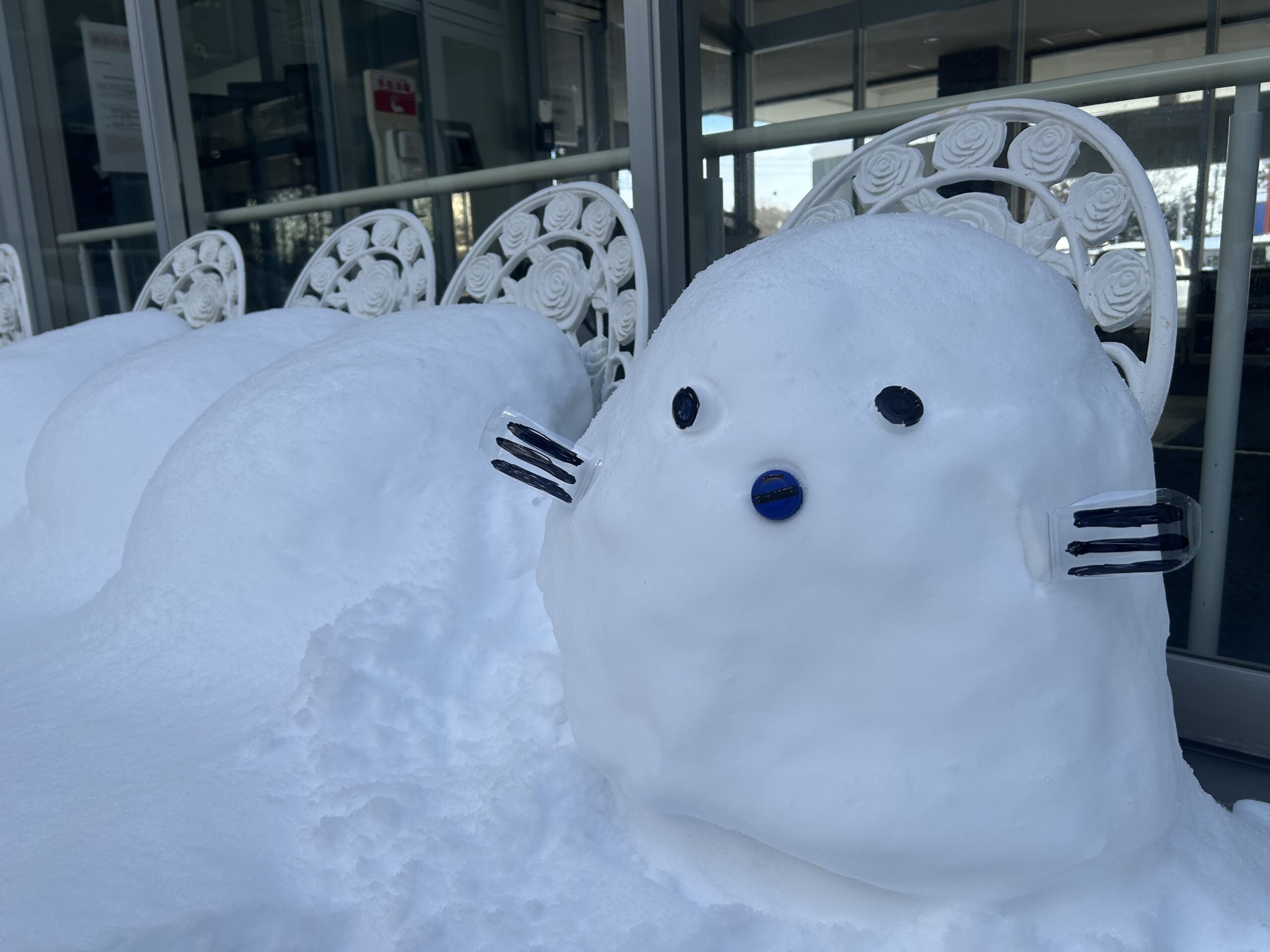 この度、アートライフの庭に白くてかわいいシマエナガが降り立ちました!庭に設置していた椅子に雪が降り積もったのを見て、とある職員が「シマエナガに見える・・・?」と気づき雪像を制作。まだ1羽しかいませんが、今後は増えるかも( ^ω^)・・・
