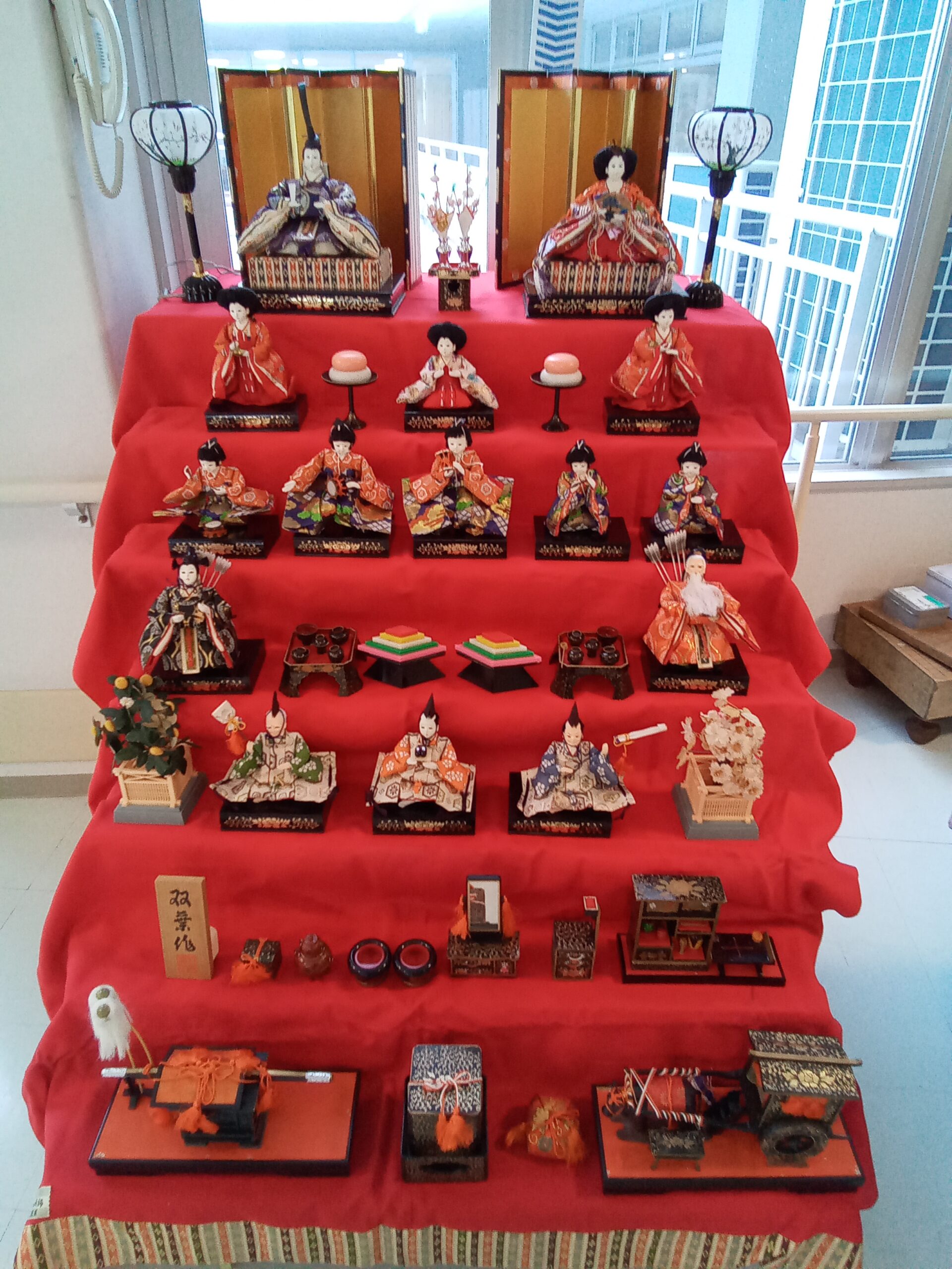 アートライフの事務所前に毎年、7段飾りを出して面会に来られた方や利用者様に見ていただいています✨