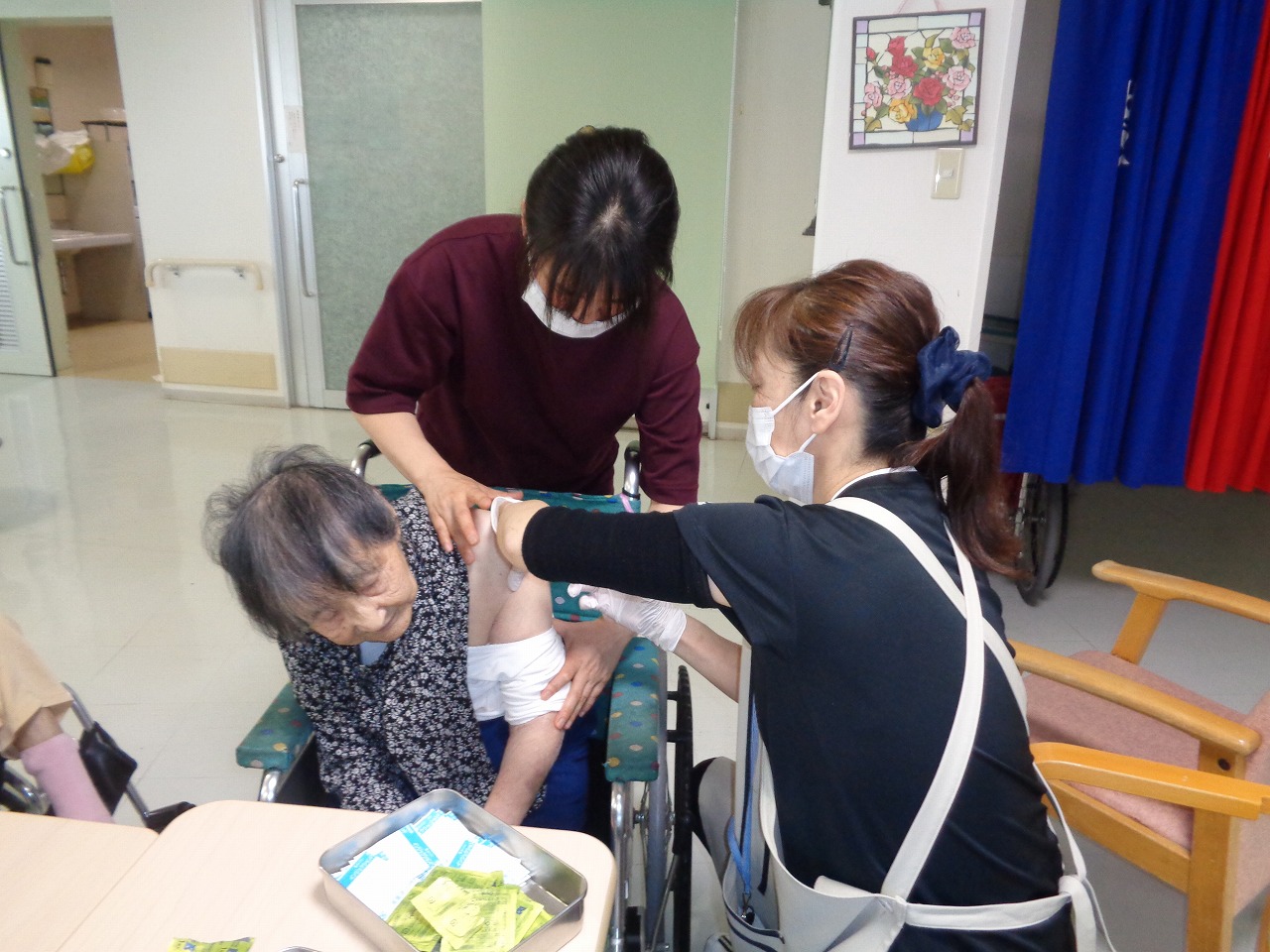 中には「早く刺してちょうだい」と順番を早くから待っている利用者様もいらっしゃいました。強いですねー!!(≧▽≦)